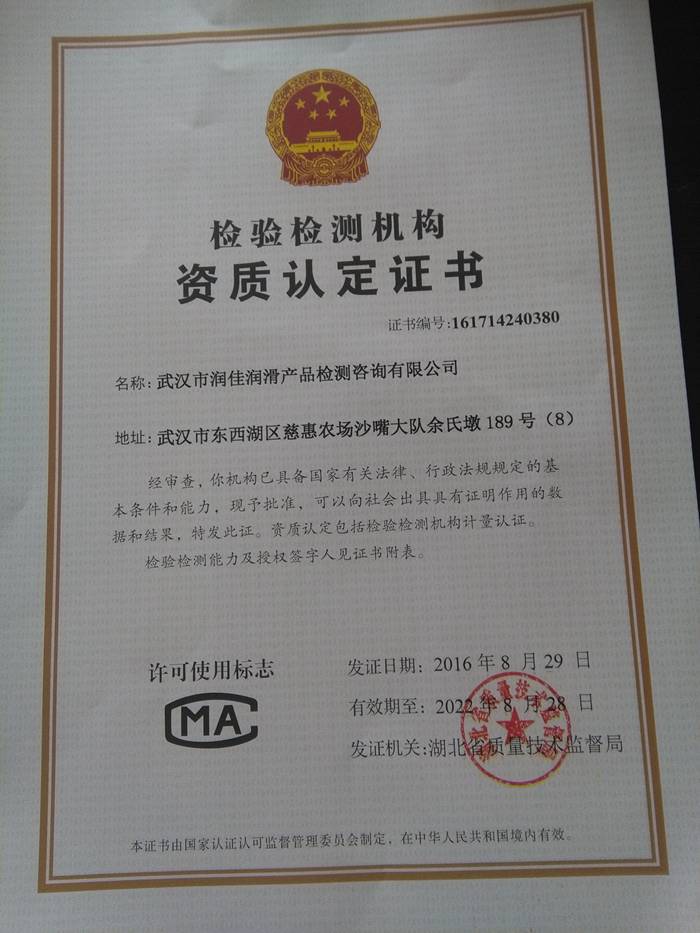 武汉市润佳润滑产品检测咨询有限公司 联系人:马经理 电话:15071385263